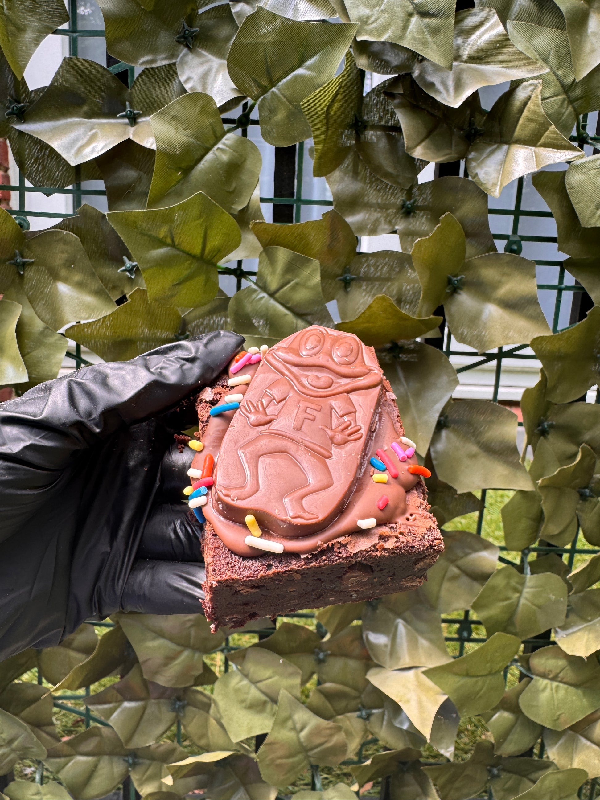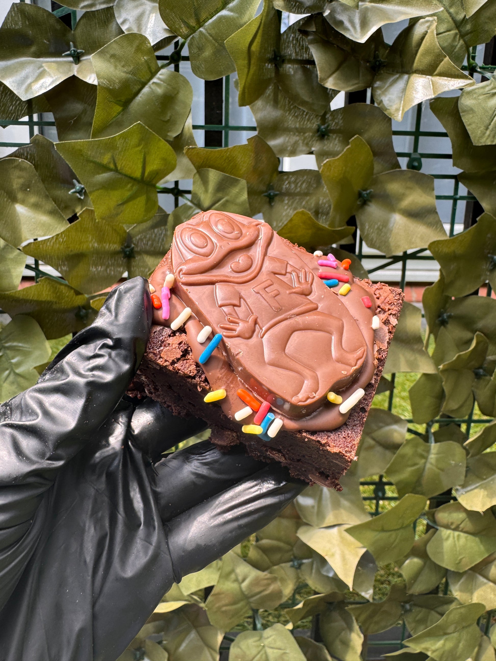 Get ready to meet your new favorite treat! Our Freddo Brownie is the ultimate fusion of rich, fudgy chocolate brownie and everyone’s favourite cheeky frog — Cadbury Freddo. This brownie is gooey perfection and topped with a smooth Freddo chocolate bar, milk chocolate and sprinkles on top for that irresistibly nostalgic bite.